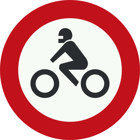 Motorfietsen mogen hier niet rijden. Bromfietsen, snorfietsen en brommobielen zijn wel toegestaan.