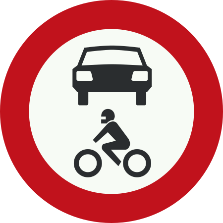 Verboden voor auto’s, bestelwagens en vrachtwagens. Alleen motoren en scooters mogen inrijden.