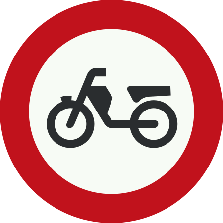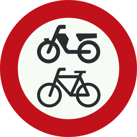 Bromfietsen, snorfietsen en gehandicaptenvoertuigen met motor zijn verboden.