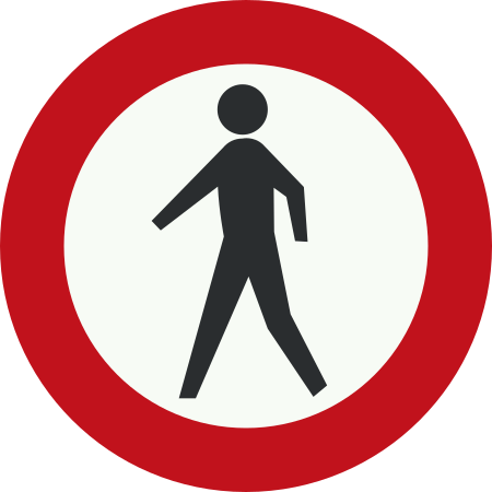 De weg is gesloten voor al het verkeer, behalve voetgangers.