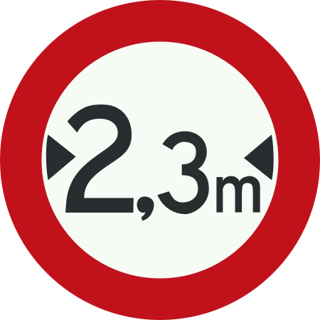 Je mag niet inrijden als jouw voertuig (inclusief lading) breder is dan op het bord staat.