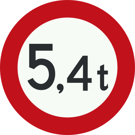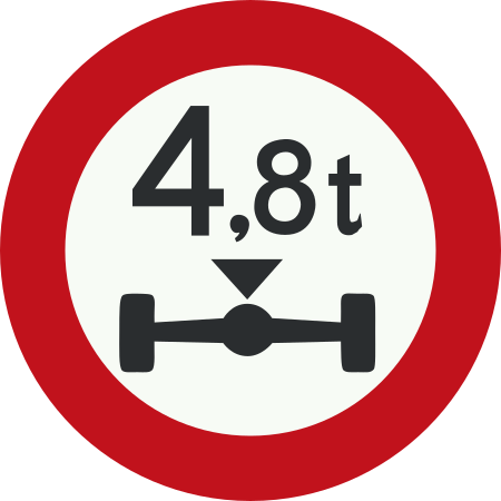 Je mag niet inrijden als het gewicht op één as van jouw voertuig zwaarder is dan op het bord staat. Het gaat dus niet om het totale gewicht, maar om het gewicht per as.