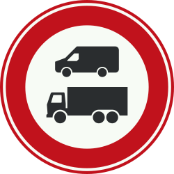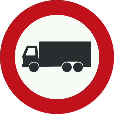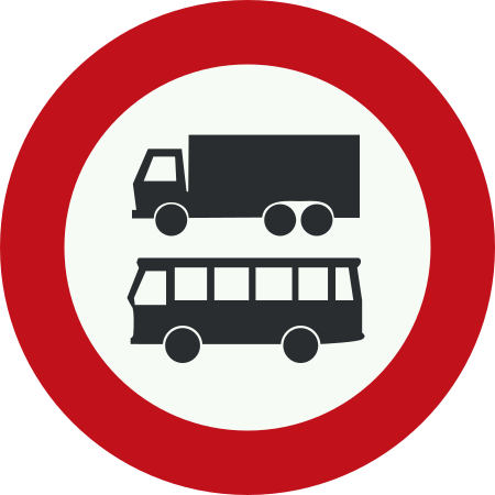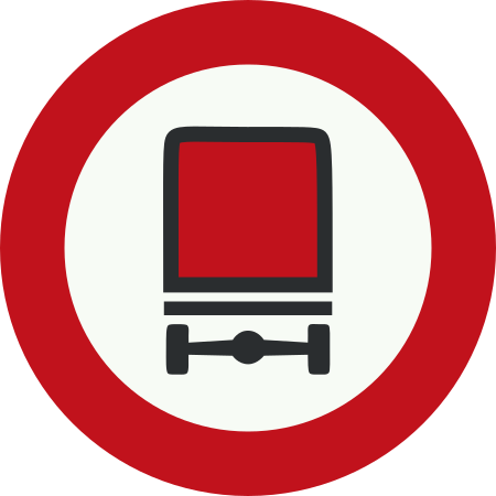 Vrachtwagens en bussen voor het vervoer van 8 of meer personen mogen deze weg niet inrijden.