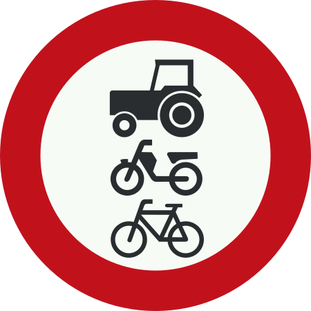 Landbouwvoertuigen, trekkers en trage voertuigen zijn verboden. Fietsen, snorfietsen, bromfietsen en gehandicaptenvoertuigen zijn wel toegestaan.
