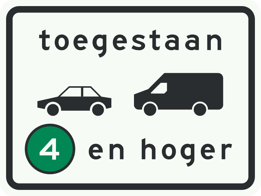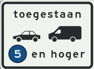 Milieuzone toegestaan voor personenauto’s en bedrijfswagens met emissieklasse 5 of hoger.