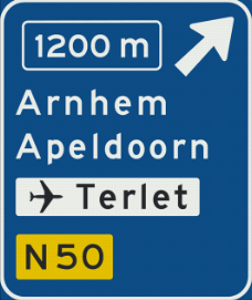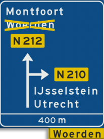 Maatregel op voorwegwijzer langs niet-autosnelweg.