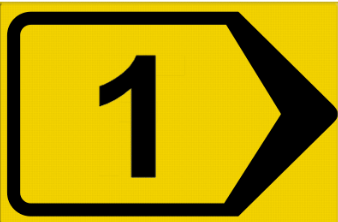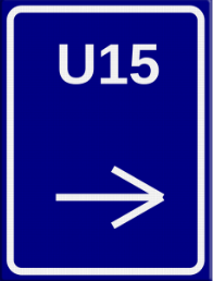 Dit bord geeft een uitwijkroute aan voor snelwegen waar verkeer na een ongeval kan vastlopen. Elke uitwijkroute heeft een eigen nummer en leidt via een omleiding terug naar de snelweg.